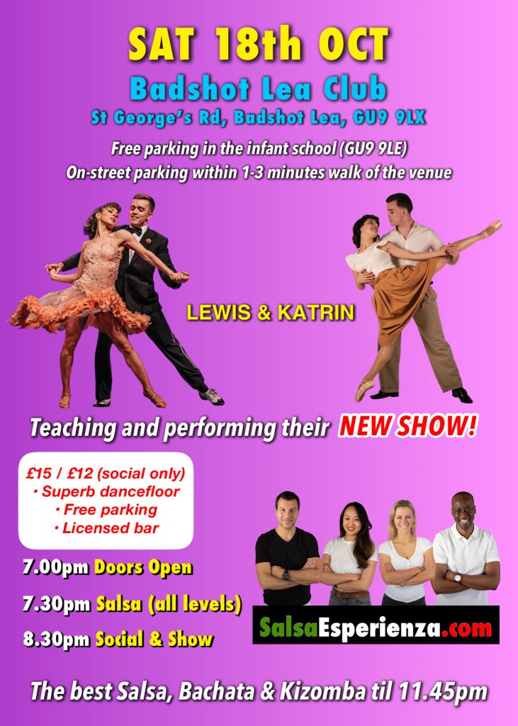 Suitable for absolute beginners, progress at your own pace. Practice at our socials and regular party nights on Surrey / Berks / Hants borders.