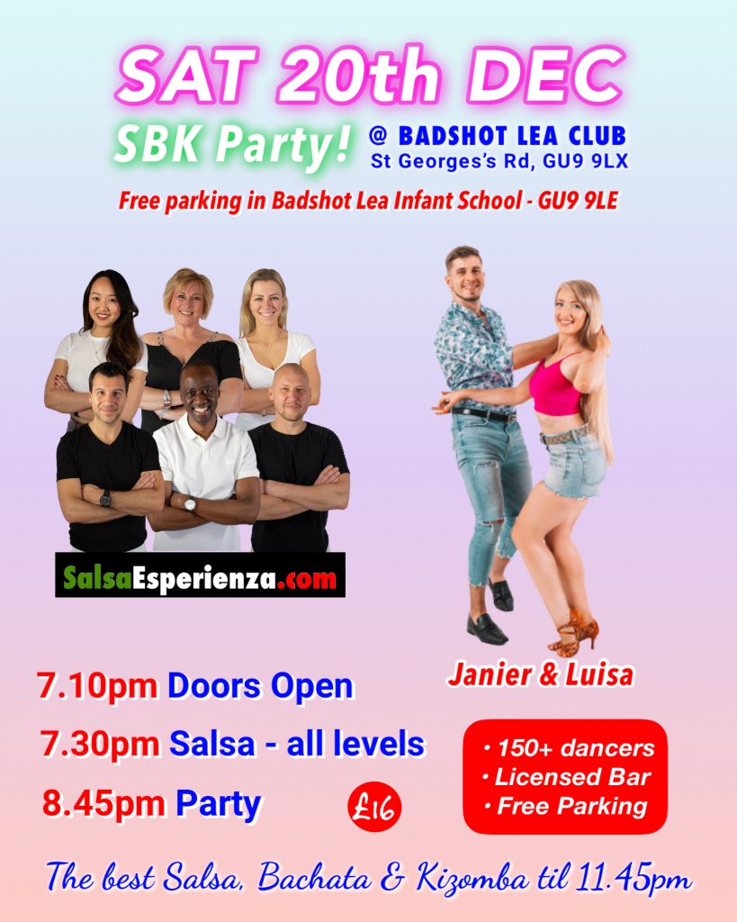 Suitable for absolute beginners, progress at your own pace. Practice at our socials and regular party nights on Surrey / Berks / Hants borders.